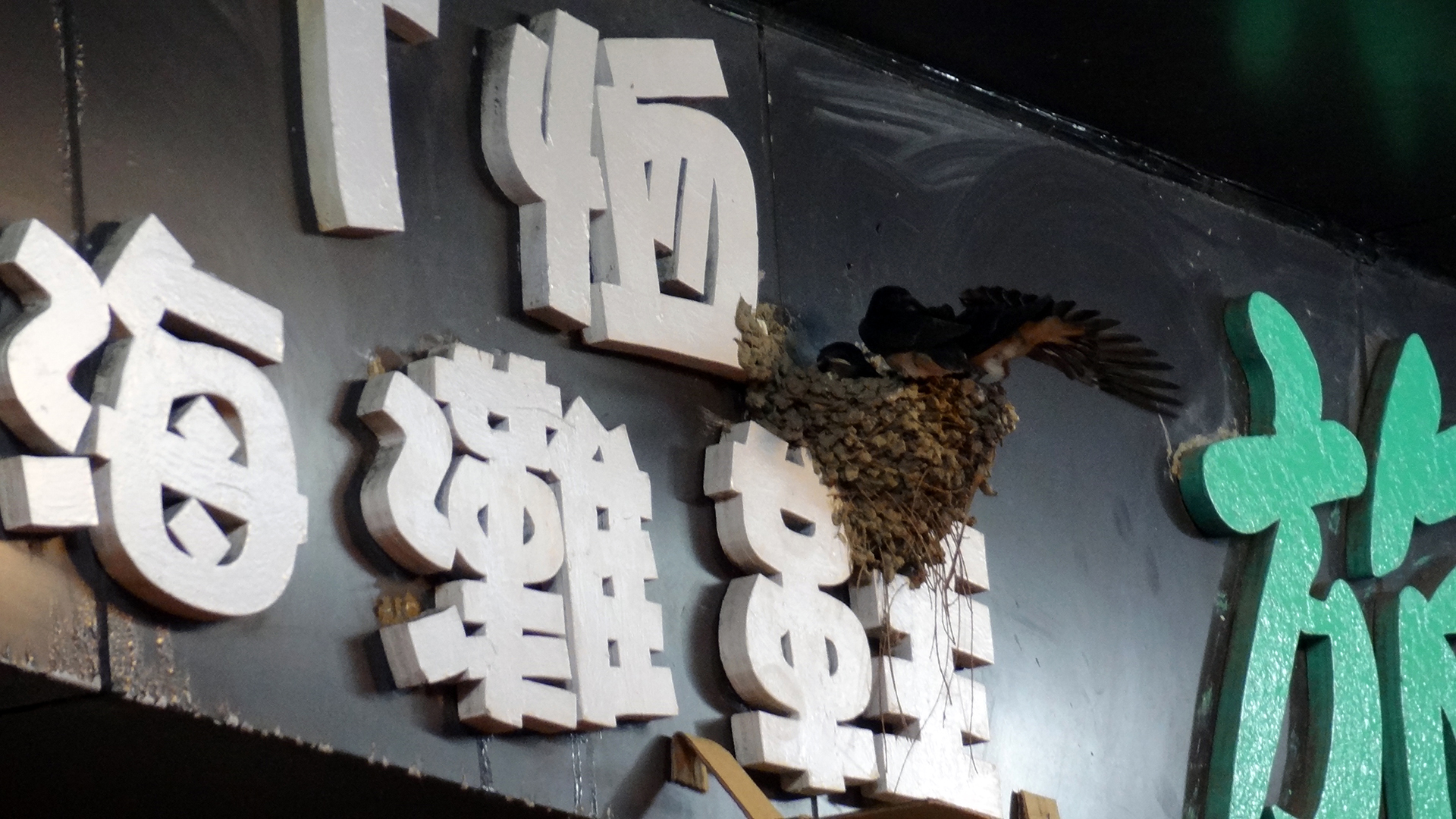 居然o係個招牌上面有雀仔築巢⋯⋯ 老闆娘問我地有冇興趣攞翻屋企養⋯⋯ @.@